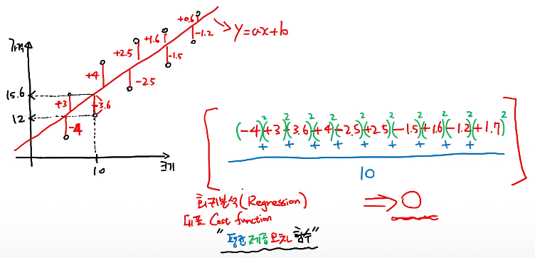 Linear regression의 경우, Mean squared error function(평균 제곱 오차 함수)을 활용