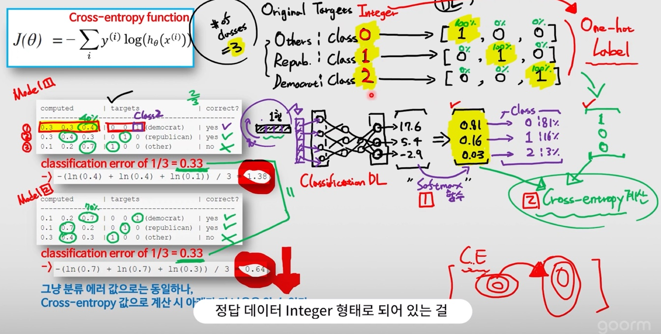 - 성능지표로 MSE가 아닌 분류를 위한 Cost function인 Cross-entropy를 활용