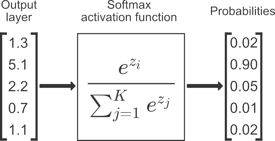 - model의 output에 해당하는 logit(score)을 각 클래스에 소속될 확률에 해당하는 값들의 벡터로 변환해준다.
