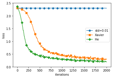 - 표준편차가 sqrt(2/n)인 정규 분포를 따르도록 가중치 초기화